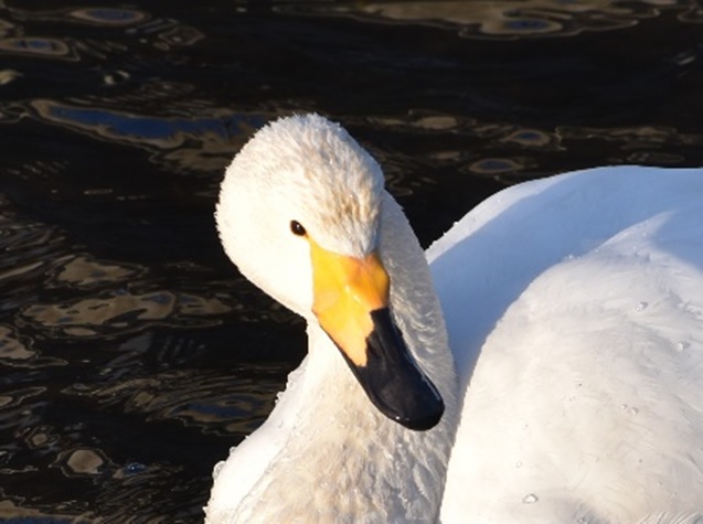 コハクチョウは尾岱沼地域には来ないとのことです。同じハクチョウですが、種類が違うので、飛来地も少し差異があるようです。オオハクチョウは主に北海道、東北地方、コハクチョウは北陸地方と東北地方に飛来するそうです。最上川や北上川、伊豆沼のように、オオハクチョウ、コハクチョウ両方が越冬する場所もあります。