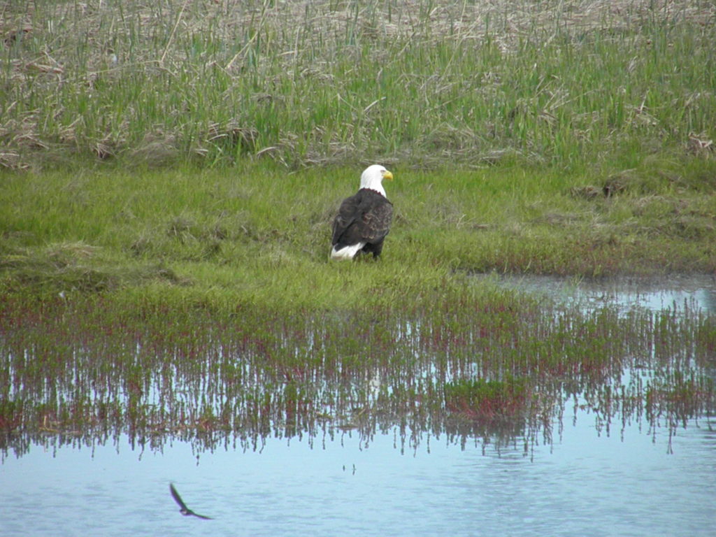湿地で休憩中のハクトウワシ