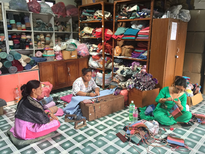 ポカラにあるWSDOでは、多くの女性が働いています。糸づくり、糸染め、織、縫製作業を手作業で行うことにより、布製品を商品化していました。作られた商品は工場でも販売されていますが、ポカラのレイクサイド、カトマンズのタメル地区におしゃれな直営店が開設されています。また、世界中に支援者がいるようで、多くの国に輸出していると、2018年に訪問した際カドカさんはおっしゃっていました。