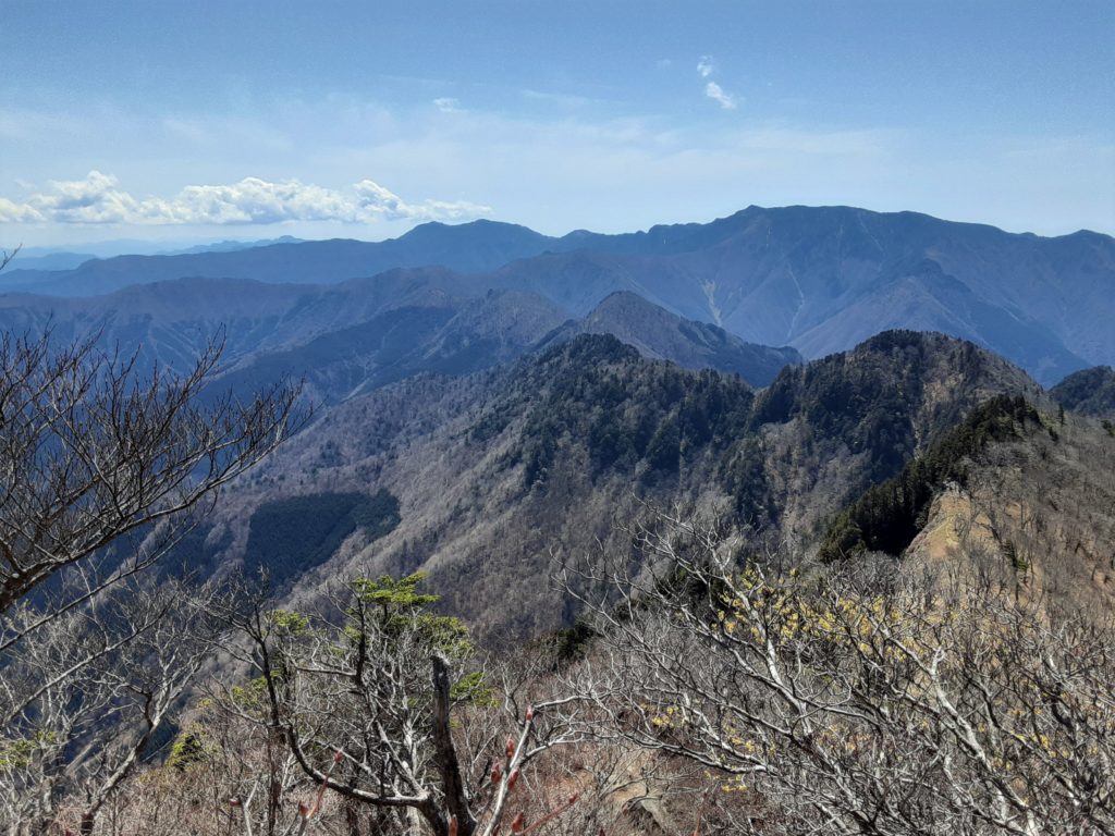 この日は晴天で大変暖かく、山頂で30分ほど昼寝をしていました。多くの人が上がってきたので、少し山上ヶ岳方面に移動し、静かなところで1時間再度昼寝をして、14:00頃下りはじめました。遠くの方でサイレンの音が聞こえていました。山の静けさが乱されます。鎖場や階段、鉄梯子の道を慎重に下り、疲れて足を引っかけて転ばないように休憩をとりながら、ゆっくり下りました。