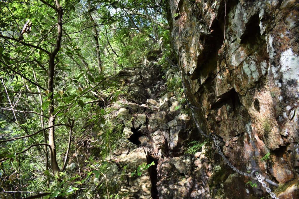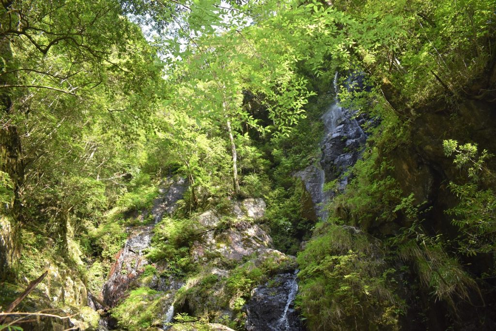 降雨量が多く年間4,000~6,000㎜に達し、これは屋久島と並んで日本トップクラスです。そのため渓谷には数多くの滝や、嵓(巨巌)があり、七つ釜滝は日本の滝100選に選定されています。登山道も崩壊や土砂崩れが発生し、吊り橋も架け替えているようです。2004年9月の台風21号で登山道が崩壊し、2014年4月に完全復旧するまで約10年間通行止めが一部続いていました。