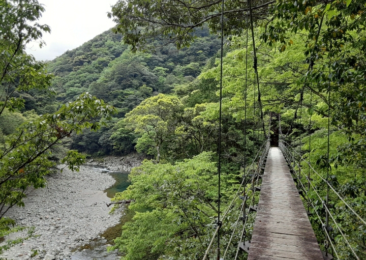 大杉谷は三重県にある渓谷で、宮川が流れ、大台ケ原の日出ヶ岳への登山道になっています。日本三大渓谷(黒部峡谷、清津渓谷)の一つとされ、日本の秘境百選の一つにも選ばれており、携帯電話もつながりません。