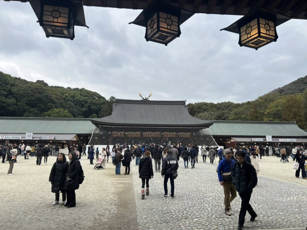 橿原神宮の大鳥居。例年約70万~100万人前後の人々が初詣に訪れる。