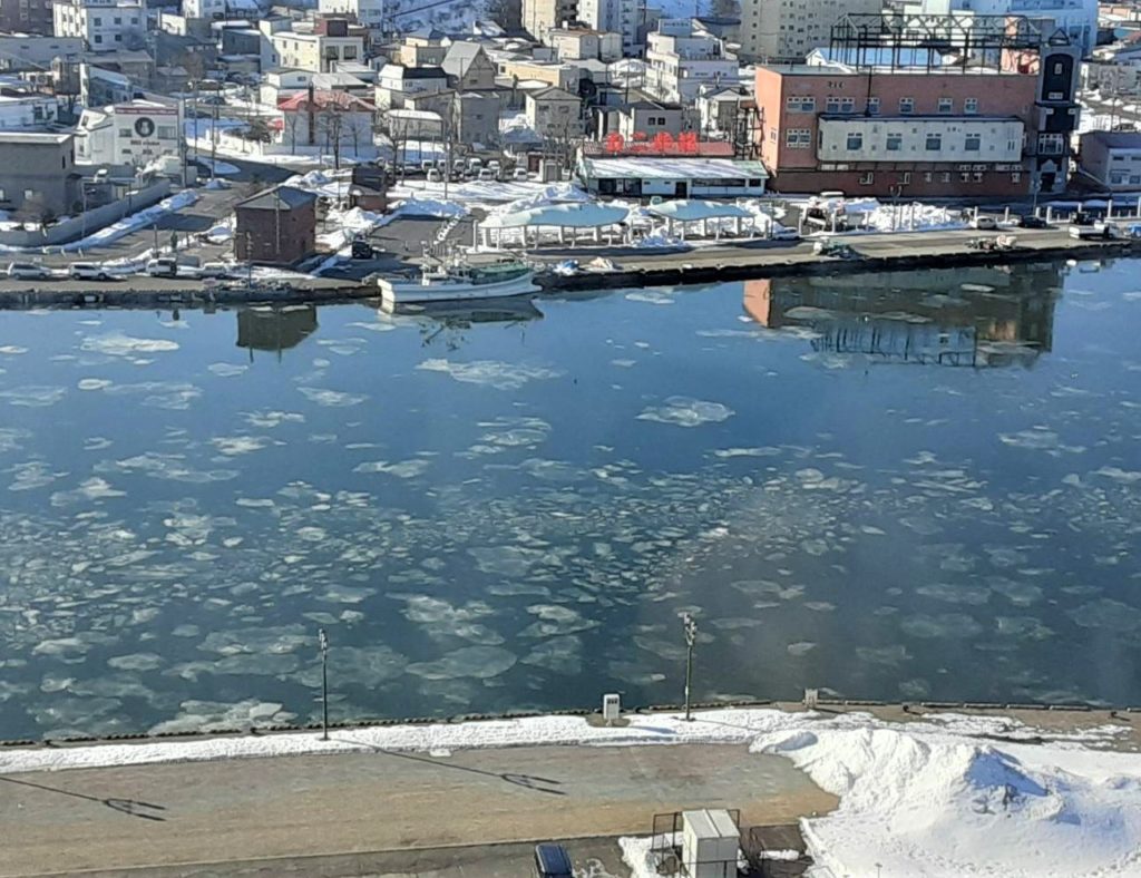 北海道釧路市にある釧路川河口部には、寒さが厳しくなる2月頃に蓮葉氷がみられることがあります。