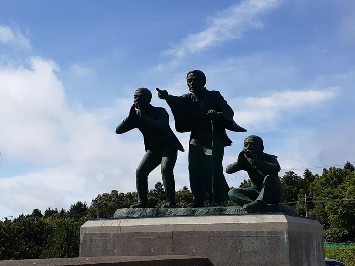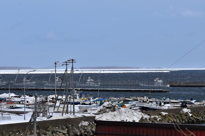 半島の反対側には尾岱沼港があります。尾岱沼港までは凍らないようで、この漁港ではホタテ漁が盛んだそうです。港の食堂「白帆」には、シマエビ丼とホタテ丼が名物として提供されていました。尾岱沼はオオハクチョウの渡来地としても有名です。道の駅尾岱沼には、北方領土に呼びかける像があります。尾岱沼の厳冬期の朝、条件が整えば光の屈折で稀に「四角い太陽」を観測することができるそうです。