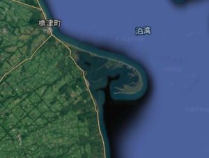 野付半島は日本では珍しい、根室海峡の流れがつくった全長約26kmの大規模な砂嘴(さし)です。砂嘴といってもなかなかピンときませんが、写真のような地形です。