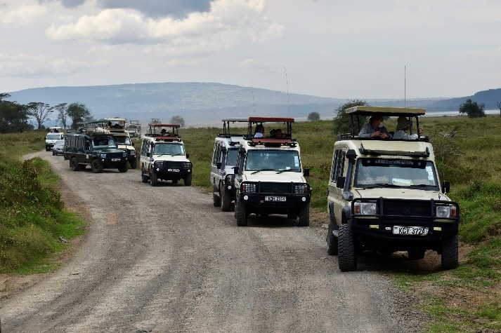 8月にナクル湖を訪問する機会を得ました。ナイロビから車で3時間、ナクル湖北部の公園入口に向かいました。公園入場口で60ドルの入場料を支払いました。普通の車ではナクル湖国立公園区域には入れないため、サファリカーやバスで向かう必要があります。ローカルの人たちは30人ほど乗れるバスで向かっていました。価格は安いようですが、その日は満席だったため乗車できませんでした。そこで現場で最大7名乗れるサファリカーを120ドルで雇いましたが、それら手続きに約1時間かかりました。ナイロビでツアーに申し込んだ方が簡単に行けそうです。