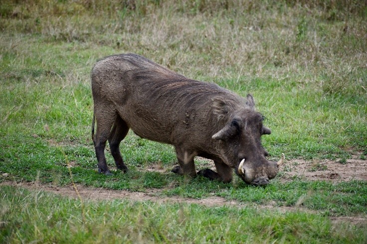 イボイノシシ(Common warthog)顔にあるいぼが特徴で、足が速いイノシシです。草を食べる際は写真のように膝立ちの姿勢になります。ディズニーのライオンキングに登場するプンバァのモデル。
