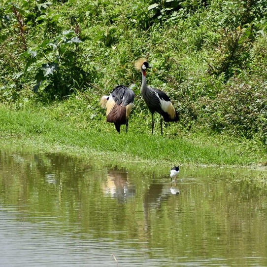 ホオジロカンムリヅル(Gray crowned crane)ウガンダの国鳥となっています。世界には15種類のツルが生息し、日本では7種のツルが記録されているそうです。鹿児島県出水市のツル観測センターで写真が掲示されていますが、出水に飛んできたことはないそうです。