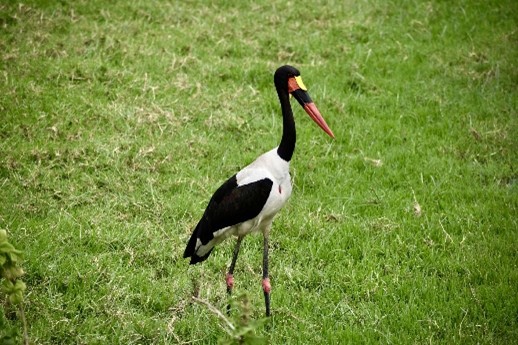 クラハシコウ(Saddle-billed Stork)クラハシコウは、鞍のような黄色い模様がある嘴が特徴的です。中南米にいるジャビルーに似ています(ジャビルーには黄色の鞍のような模様はなし)。